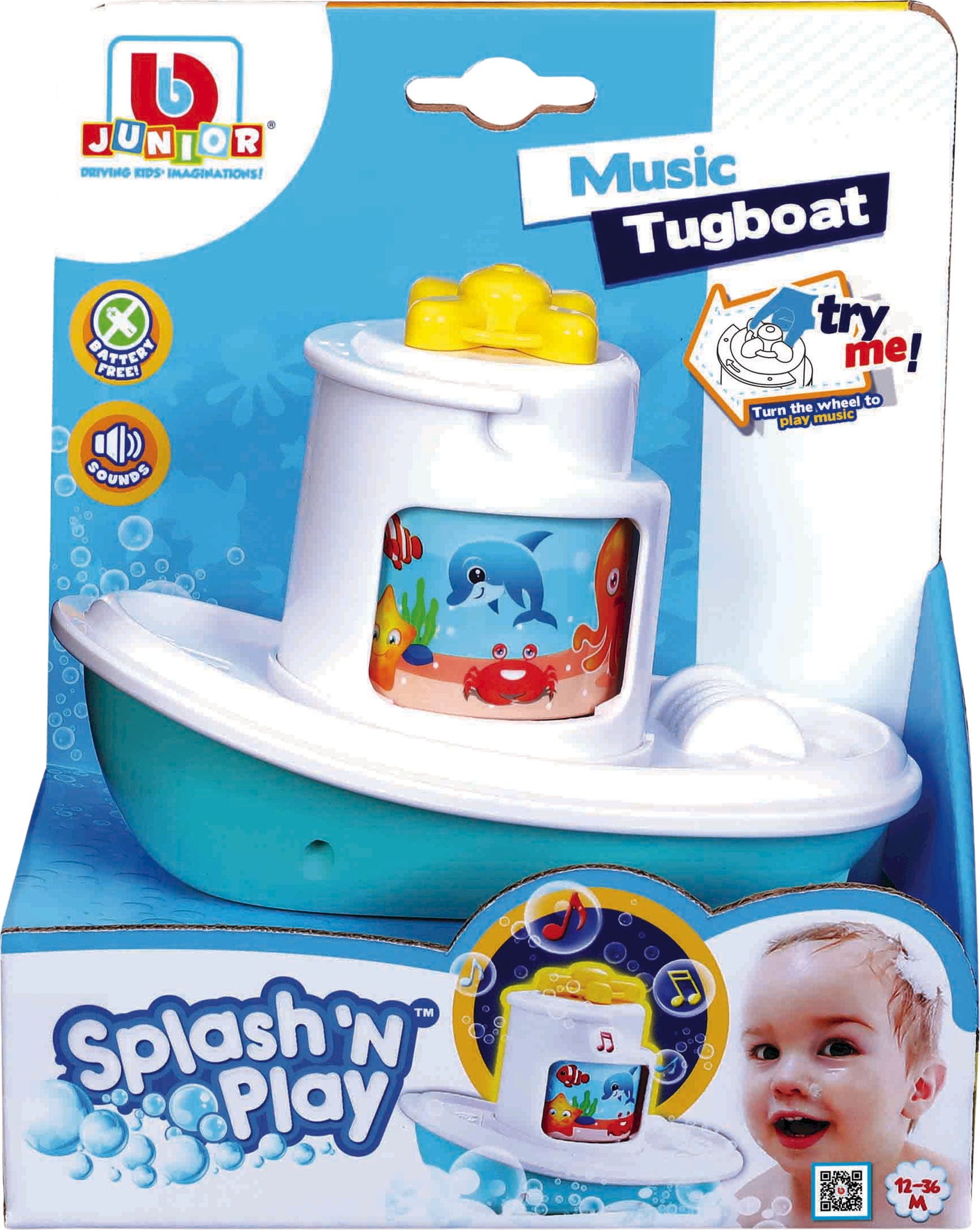 Mit dem Splash’N Play Music Tugboat von BBJunior zieht gute Laune in deine Badewanne ein! Dieser fröhliche Schlepper sorgt für musikalische Unterhaltung beim Planschen im Pool oder in der Wanne. Durch das einfache Drehen des Hebels an der Oberseite erklingt fröhliche Musik, die zum Mitsingen und Träumen einlädt.