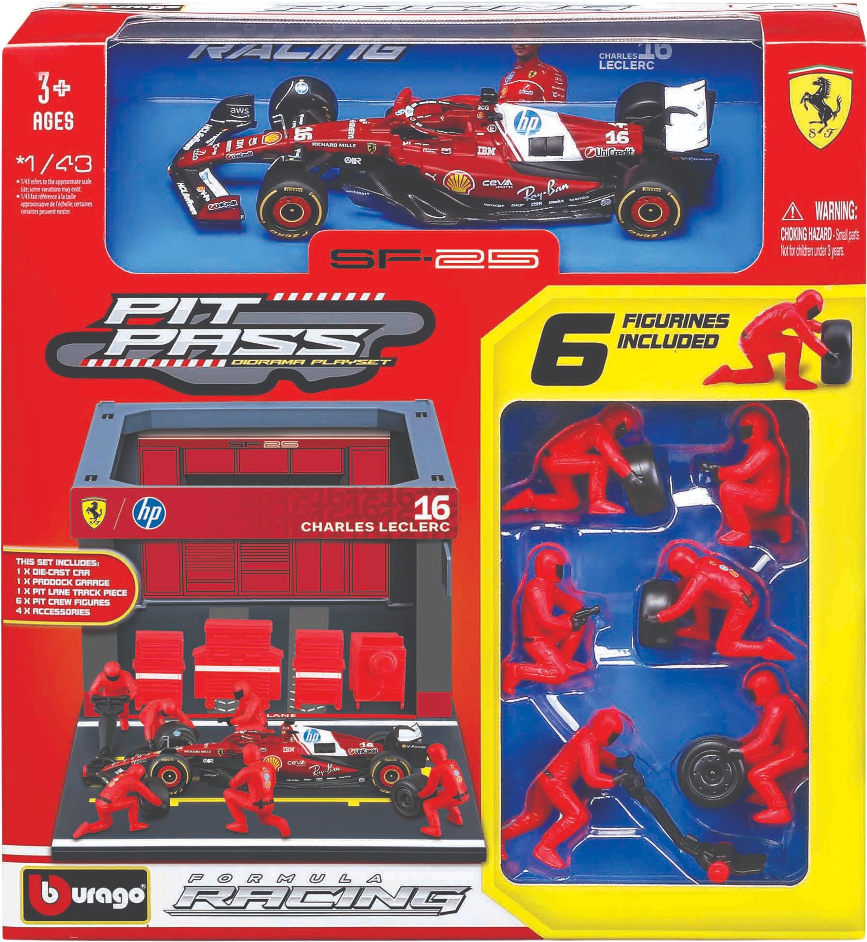 Bburago F1 Ferrari SF-25 Pit Pass ´25, WB, #16 Leclerc, 1:43