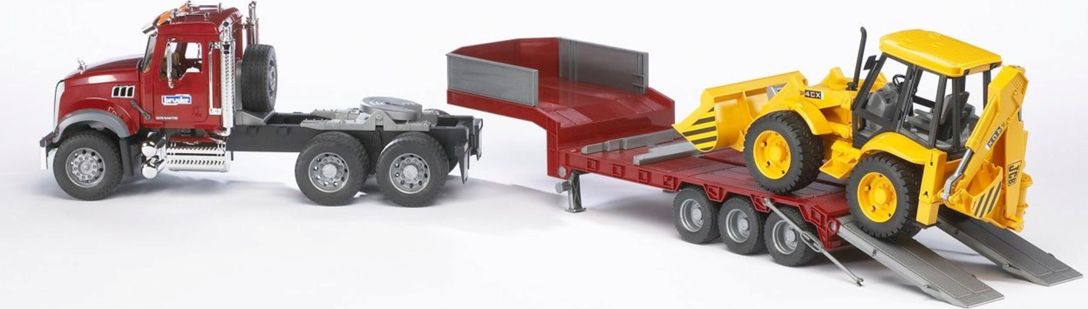 Bruder 02813 MACK Granite LKW , Tieflader und Bagger