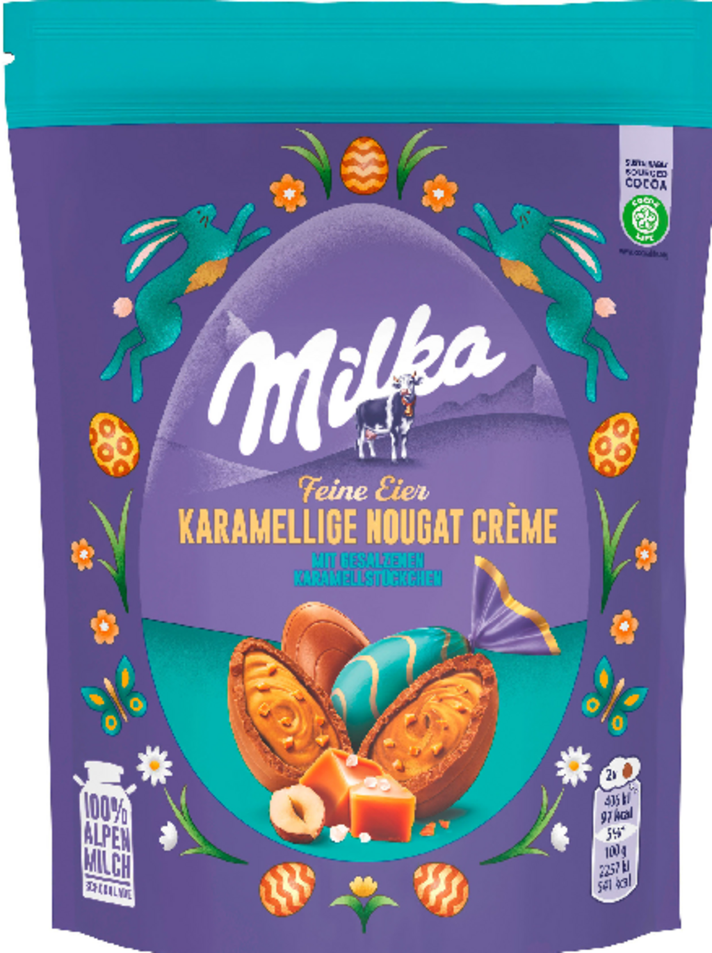 Diese Milka Eier vereinen die bekannte zartschmelzende Alpenmilch-Schokolade mit einer besonders aromatischen Füllung. Jeder der einzeln verpackten Schoko-Eier ist ein köstlicher Genussmoment, der perfekt zur Osterzeit passt.