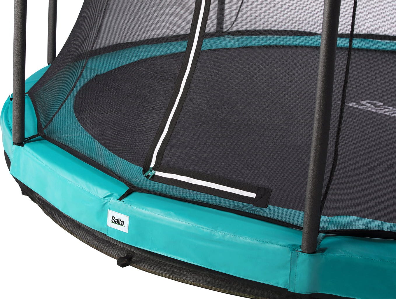 Das Salta Comfort Edition Ground bietet ein erstklassiges Sprungerlebnis zum unschlagbaren Preis. Mit seinem modernen und stilvollen Design fügt es sich harmonisch in jeden Garten ein und ist perfekt für Anfänger geeignet. Für ein komfortables und dynamisches Springen ist das Trampolin an der Unterseite mit einem speziellen Netz ausgestattet, das die beim Springen entstehende Luft optimal verteilt. Die mitgelieferten robusten Bodenanker sorgen für eine besonders feste Verankerung im Untergrund. Mit einer Höhe von nur 20 cm über dem Boden ermöglicht das Trampolin einen bequemen Einstieg. Der verzinkte Stahlrahmen mit schwarz glänzender Beschichtung bietet eine langlebige und stabile Konstruktion. Das feinmaschige Sicherheitsnetz mit doppelseitigem Reißverschluss bietet optimalen Schutz und lässt sich von innen sowie außen leicht öffnen und schließen.